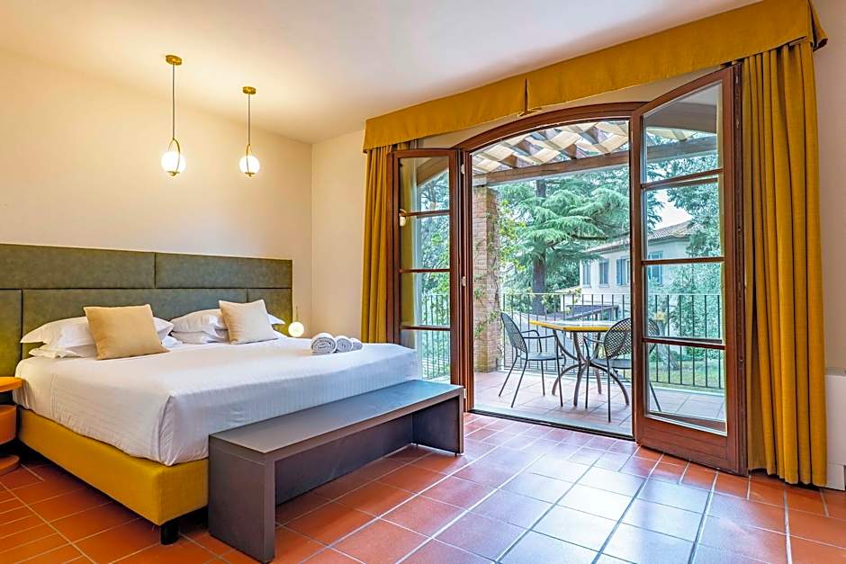 In the main building or one of the villas. Some with private garden.